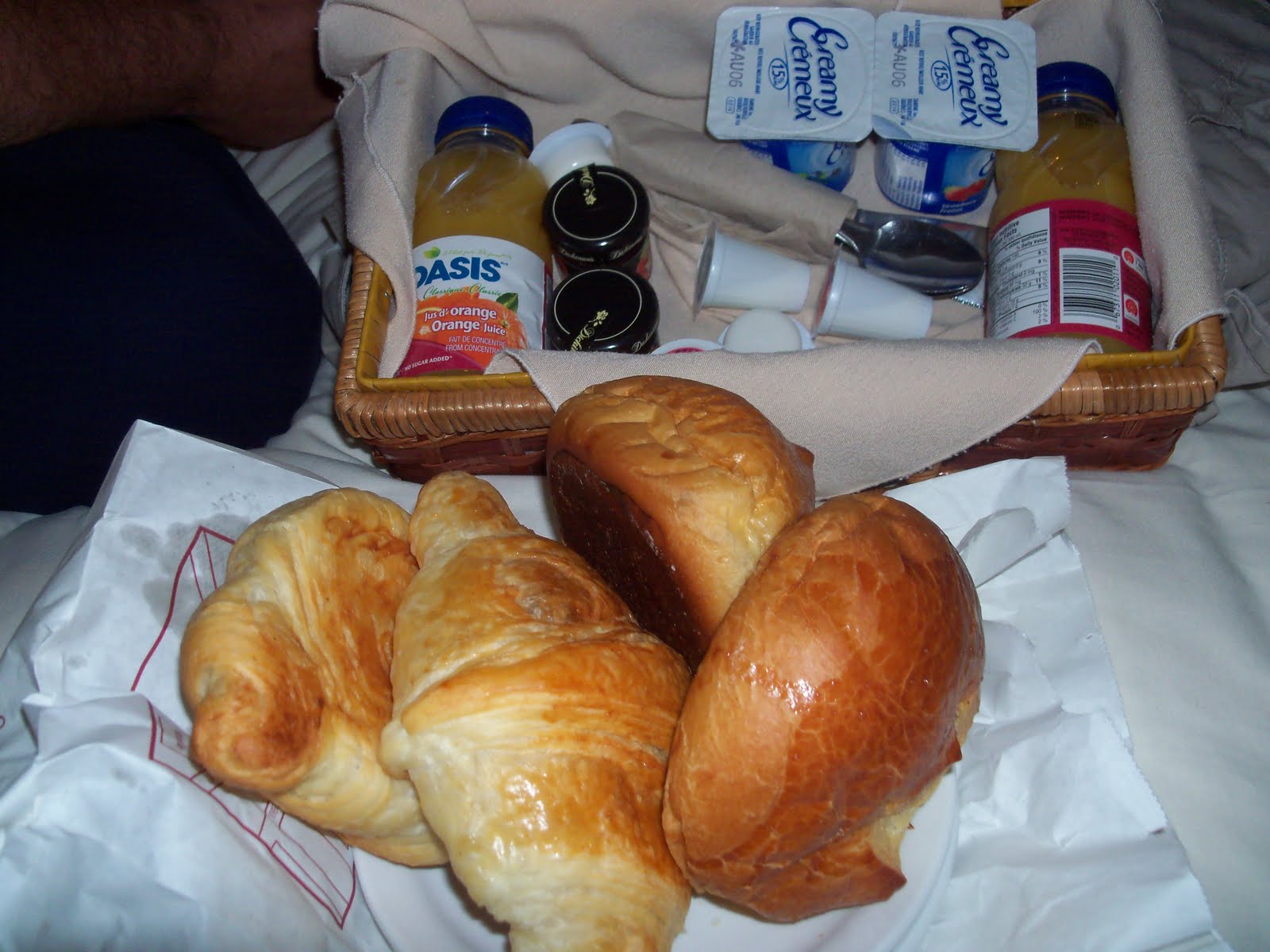 My feet are killing me and I'm so tired but I promised myself I would blog. Our day started out with breakfast brought to our door in a picnic basket. It was way cool and the rolls were warm and fresh. YUM